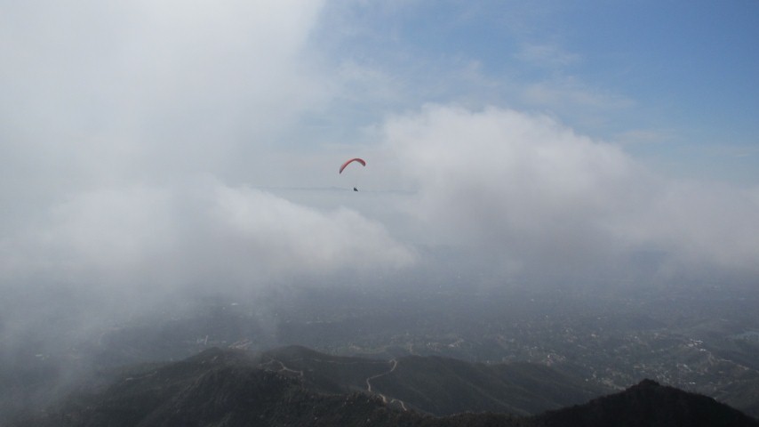 piled in the fly above all people mover and got up to launch with many clouds forming below us out front. doug e fresh launched first and climbed up easily and headed over to the sun at RR where he got to a higher cloudbase, maybe 3500 or so. master bader and this cracka beat bushes below launch for a bit before gittin a hundy over and heading to RR. never got much above 3300 but the whispys were way cool and fun and headed to cathedral in a headwind. spent most of my flight playing over there in the shade trying to get at least 2500 to try to go one way or another. sung some whitney houston songs to the hikers on inspiration point and finally got up to the white room and headed back to the knob under the tit. climbed up the tit slowly but cloudbase was filling in quickly and lowering. made one more play for RR but got rejected in all the lowering shade. one more fatty at the holy hills and made sure the compass was pointing south as i tasted the good stuff. popped out near parma above most all the white marshmellows around and hit that whitney high note!!! uhhhhhhhhhhhhh, good clean fun!! seems the cloudbase soon was solid about 2200 up and down the range and almost all the way out to the coast flushing everyone.