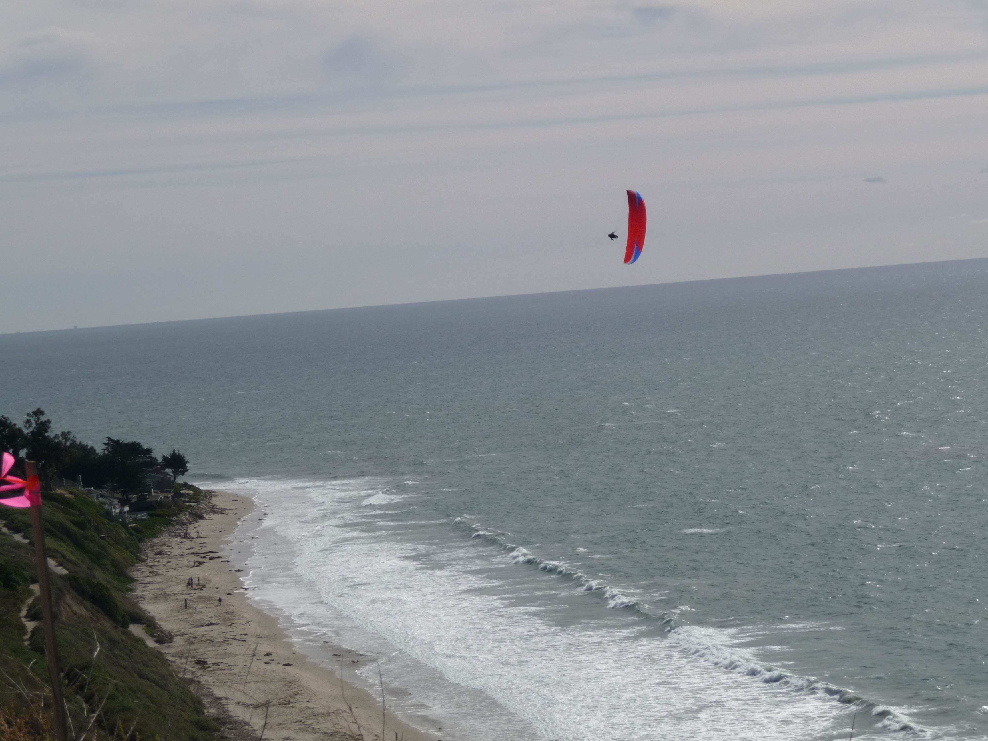 Well I'm not sure if you're stoned or not John but... that is a hang glider pilot (Zac Majors) flying his hang glider and hanging backwards at Bates. I also have some shots of him standing in the frame. Pretty fun to watch!