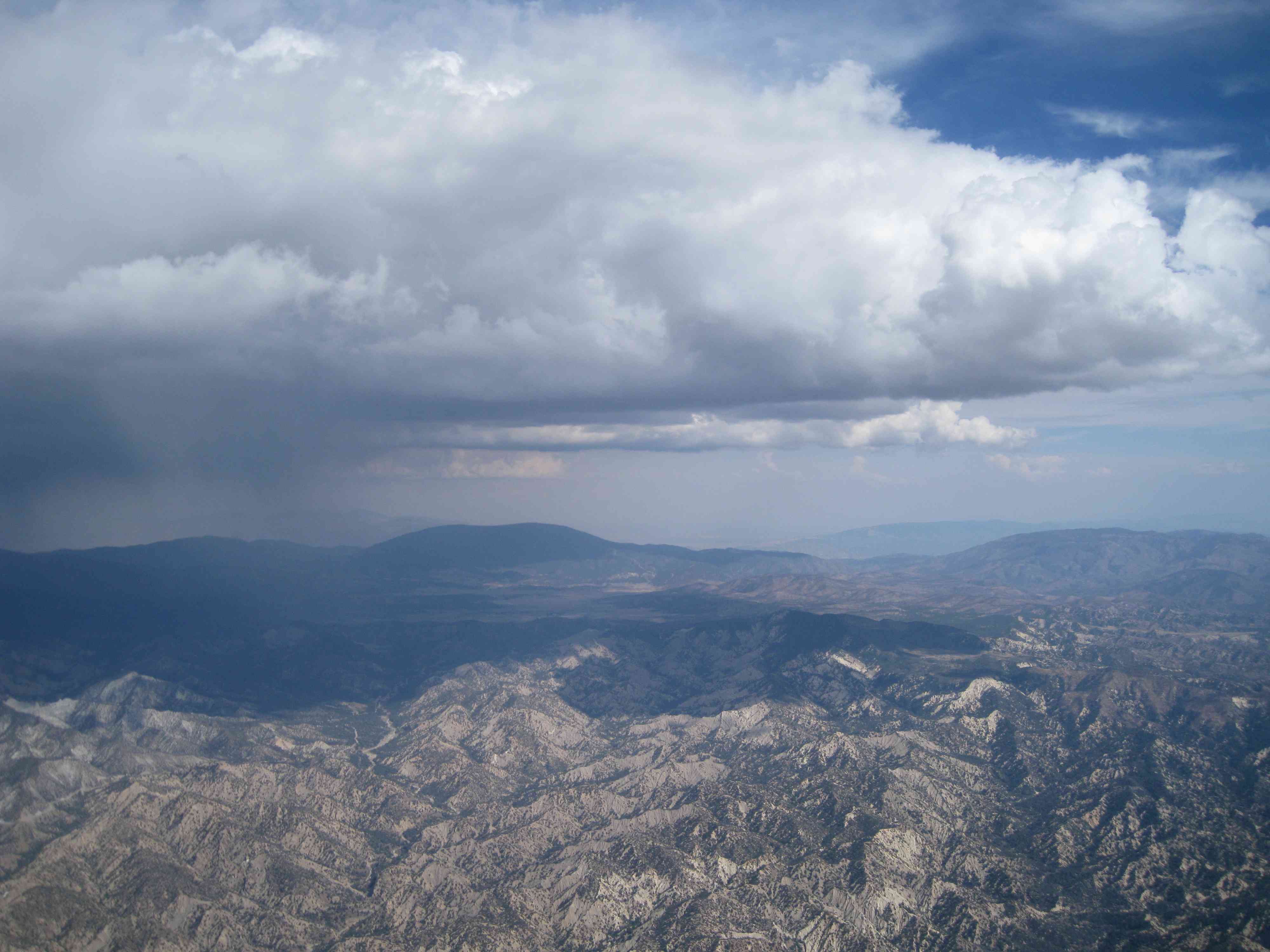 Well, I FINALLY made it into Lockwood Valley!!! I launched after Zippy and found lift right away that took me to 10K. I then boated up and down the range between 9K and 11K. Reliable lift was always over launch/knob, so I kept going back there to tank up. I hit 12.7K in one of those tank ups. I went OTB at 11.7K and headed straight toward Lockwood Valley because there was a big cloud in that direction. I could see rain on the northwest side of LV. Terry Taggert was scratching over the badlands and DD had landed at Dry Canyon. I was down to 7500 and was thinking about heading back to Dry Canyon, when I started getting lift over a big hill north of LV road and west of the badlands. I rode that to 10.2K and then told Kathleen that I'm going to make it into LV. I stated heading SE to get away from the rain and it started hailing pea sized ice balls on me. I'm heading toward the foothills to the south of LV, but they are all in the shade and I get nothing. I'm down to 7000 and made a bee line toward the airport. I get there with enough altitude to do a few circles in an attempt to find the wind direction - it was N NW. It seemed like there was no wind on final and at the last minute, I remembered that the ground is 5100 feet, so I threw the bar out way earlier than normal and landed nicely. I should have landed closer to the road, but that never entered my mind - long walk, but nice and flat. Terry landed on the south side of the road close to the airport. Jonathan landed at Quail Lake, and I don't know where Marge, Bob Anderson, and Zippy landed. It was a fun day. Now I'm gunning for the Antelope Valley.