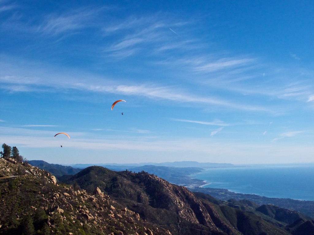 Turned out to be pretty good! I grabbed OJ and met the Fly Above All crew at Parma at 11. On launch by 11:30ish where Cormac, Truax and a few others were already setting up. The Orange Man and Truax were off early and I followed 4thish back in the pack. Most chose to go West with altitudes into the 45s but I was focused Eastbound so opted for the TF. Got stuck under the ceiling at 4250 for 30ish minutes. I knew Truax would be coming back so held my ground, hoping for the magic 4700 before continuing. Sure enough, Truax joined just as I topped at 4350, which was the best I could get, and took the glide across Shadow to Montecito. Poor glide but Shadow was working back to 4300 making Montecito easy. I think it was Little John already over Montecito, and climbing, but when I arrived I was greeted with "Pine in July" style climbs and exceptional chunk and probably messed with his jive a bit. It was all I could do to keep the glider flying straight and mostly open. Finally escaped in the mid 4s and continued on, now a ridge or two behind Truax. It continued on like that all the way to the powerlines, Truax opting for the fast and low route, while I chose to stay higher but a bit slow. Peak altitudes improved but the high clouds had us a little doubtful. I expected to get shut down any minute but that never seemed to happen despite wide shadows. We were getting into the 5s but but just barely and as I hit the Powerlines (not literally!) Tom reported some NE coming around the corner and opted for Carp. Figuring that if the master was throwing in the towel, I'd be wise to follow suit. Set down at the Surf Dog within 30 seconds of each other. Stellar day, great climbs with a few spooky exceptions, and minimal radio chatter. Would have loved to see more of the downrange crowd join us on such a great day!