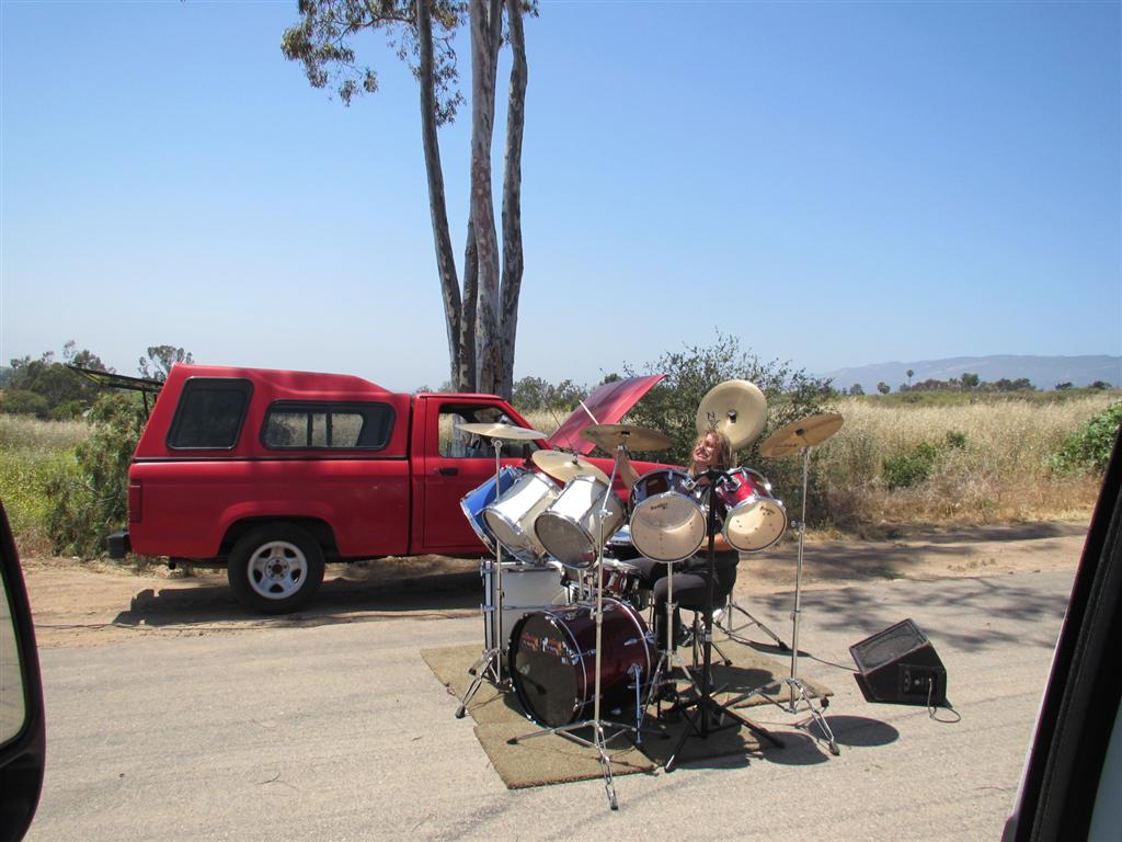 fun afternoon with the eagle crew. hot and inverted at launch but there are always some sort of soaring possibilities in our hills. west at the t when we met up and steady 6-10 ese at launch. able to squeeze a minute or two out of each e facing lump, never gained much and headed to no name from 50 over the bump in front of launch. kept milking the se tailwind/ridge lift to vor where i hung out most of my flight. finally got one back to 2700 and took the lower west wind back to lower no name. hung out on the low points/rockpiles on the two no name spines but never got above 2200. landed at the T an hour after launching where some dude had a full drum set up in the road with van halen blaring out the monitors and he was going frickin off! awesome!!!!