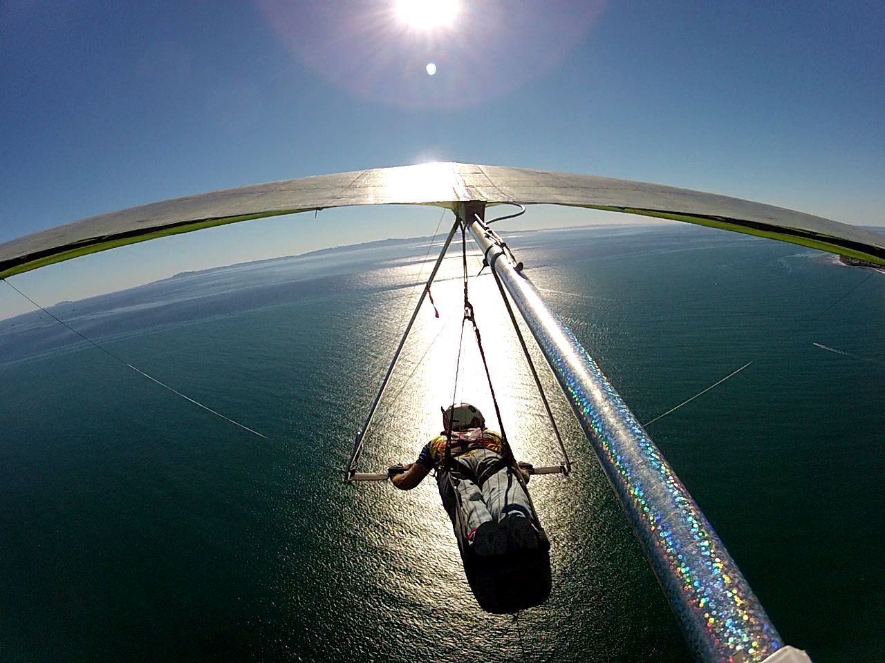 Drove up from LA with XC buddy, Tavis (PG) then segued in Ventura to get Fast Eddy and make the meetup with Max earlier. The 4AM Vandenberg balloon had showed a decent layer of unstable air and the noon BAK40 model looked stellar. Several PGs were either sledding or struggling but I believe these may have been students. Little John boldly launched before noon and got nary a bump all the way down to Holy Hills and below only to be slowly resurrected. As he passed Eliminator launch altitude I hooked in and hucked off about noon. Made a beeline for the spine to RR which worked okay as I eventually tagged 4K briefly (GPS alt. Barometric was 3,843')). From there on in it became a scratch fest to just stay up. Mixed it up in bubbly thermals with John L, JR, Tavis, Zippy (tandem), Wolfi (Austrian comp pilot), Max, et al. Bailed from the hill East of the antennas with enough to get a nice glide out to sea for some more sweet shots in clear and sunny weather before landing by the rainbow where Max had picked us up. The other pilots all landed by Fess Parker until Steve N. back on his old Atos B went for the extended pizza run with extra anchovies. It was a good day to come out and big thanks to Max for schlepping so many wings up. The drive back to Long Beach took 4 hours. :shock: :lol: