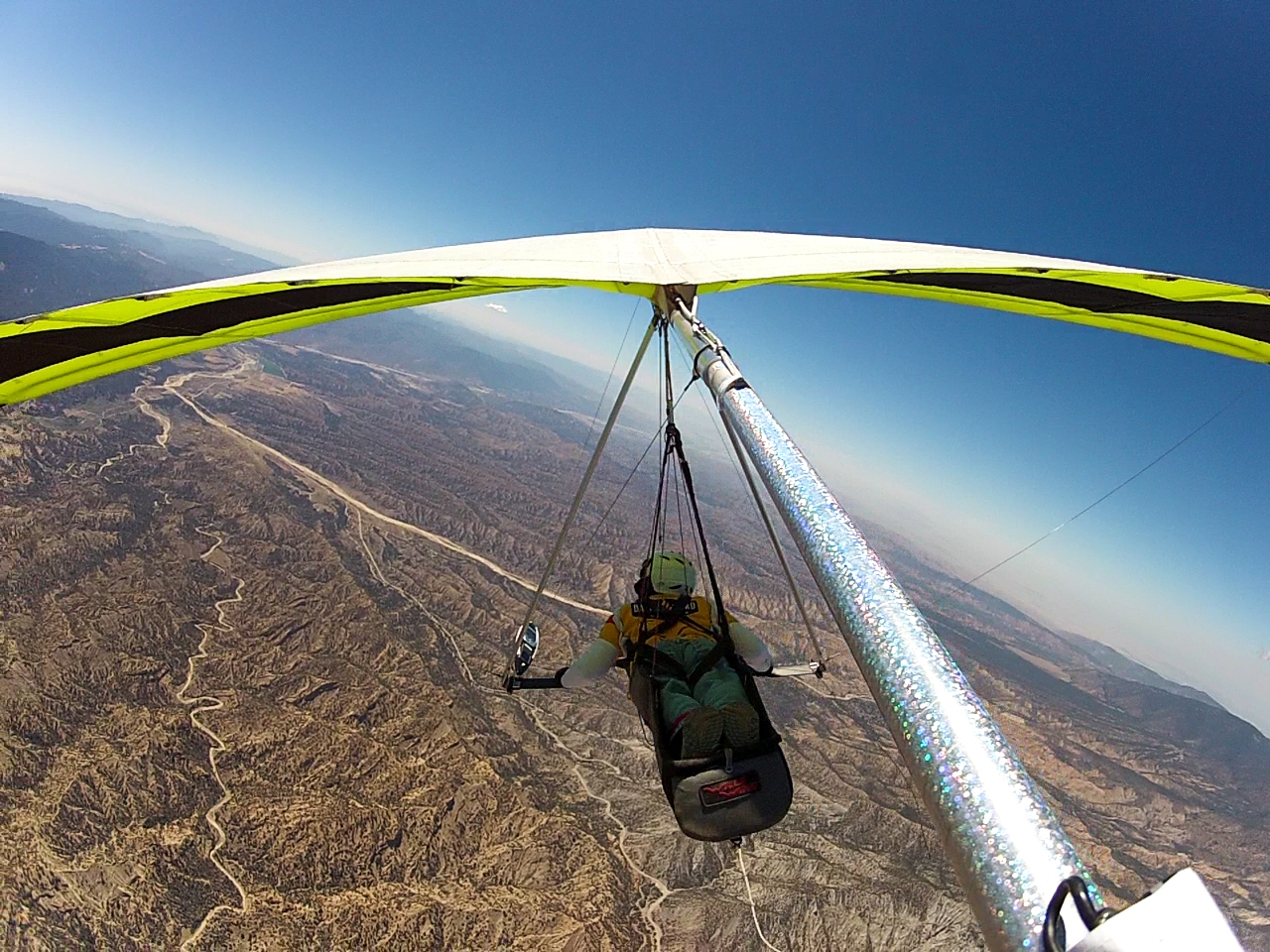 Inland (behind the Ojai Range) the lapse rate was good, but there was south wind at altitude. Jonathan Dietch flew Pine in the heat of the day on Sunday and eventually connected over the 50/50 to almost 12K, but fizzled across the south side of Lockwood Valley. His photos show some clouds to the north? The FlyAboveAll crew went to Pine Friday through Monday for the late day air. The were mostly getting about 1500 to 2K over launch. I think the feed line was further north.