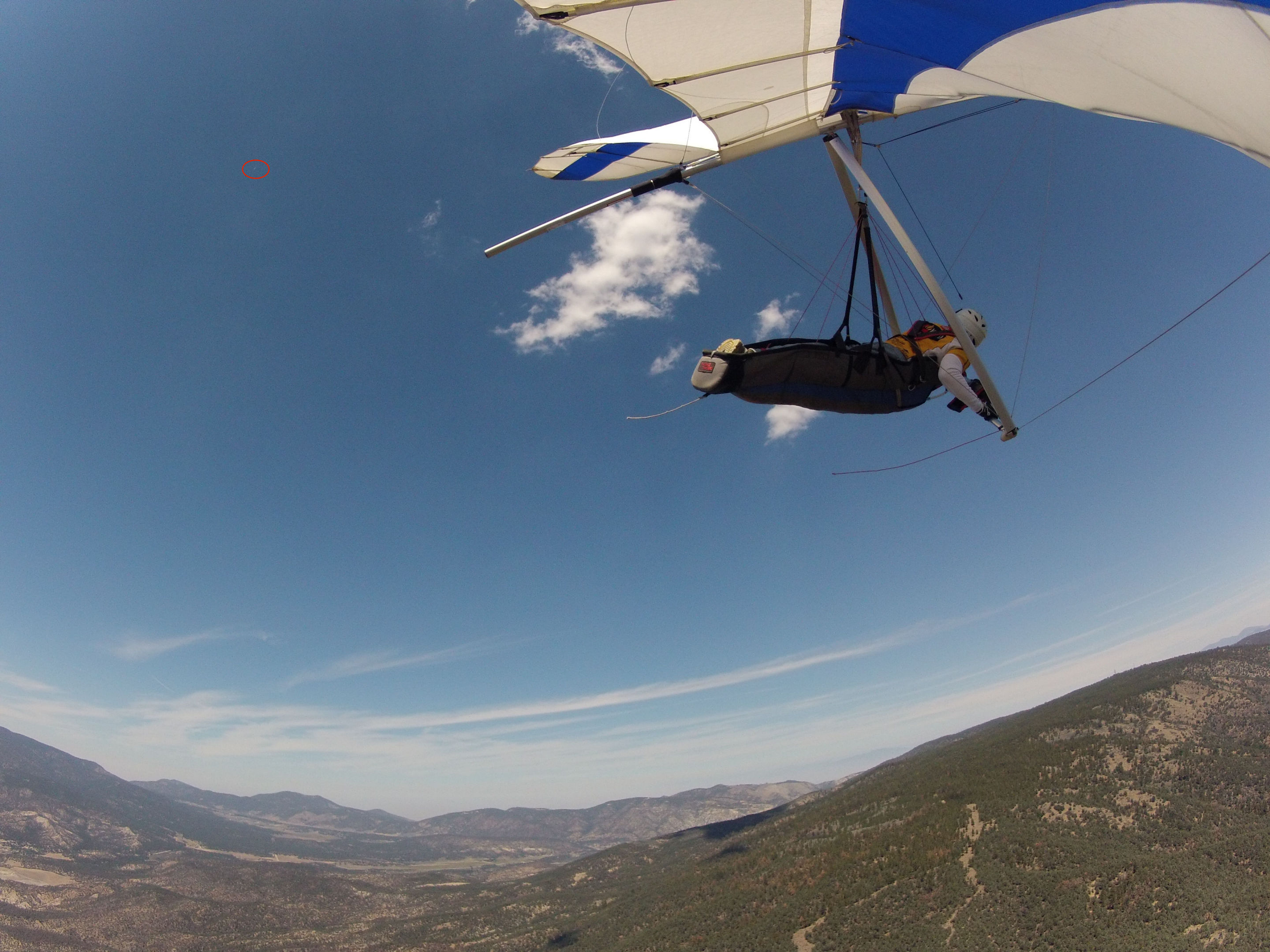 Big thanks to Tom Truax (SD) for calling me a few days ago with hopes of flying Pine. His efforts with logistics and calling the day were spot on. Thanks to Jonathan for the ride to launch and for the chase from Eddie and Doc. Nice to know you have someone to pluck you out of the heat of the day wherever you may land. As always its nice to fly with Jonathan as he knows his way around the mountains and the flats and won't go out without a fight. SD is the same way, showing what is possible late in the day from Pine, landing in Fillmore (hence the name Sun Downer). Nice!