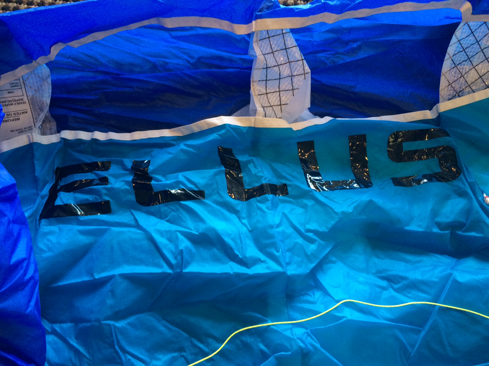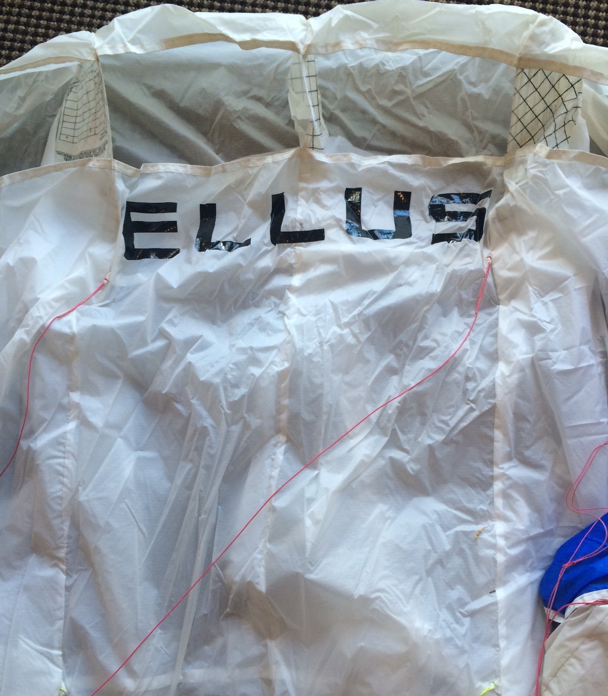 The blue/blue Ellus only has 10 hours on it. It's crisp and the colors really pop. It also has an interesting history. A jealous lover (not mine, I swear) took a knife to i while it was still in it's original packing. The attached pics are to show the expert patch work. It has been deemed 100% air worthy and all 10 hours are after the repairs, all local coastal flying.