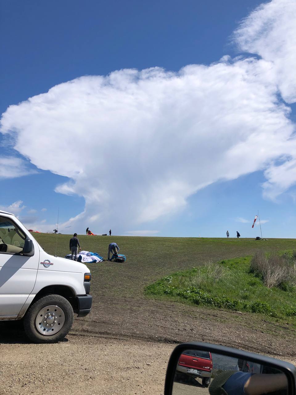 The Skyport (launch) shaded over with a half dozen pilots queued up and a couple more spread on launch wanting something more robust than zero to 2-ish, so I needed to use the “push” protocol again. Having learned my lesson from the previous occasion I was conscious to slow down and be more diplomatic. I debated about pushing for a minute to evaluate if I was willing to go without delay in whatever, which the protocol expects. Garcia graciously ran interference, spreading my canopy with a crown shape and the leading-edge tension I prefer for calm air pullups.