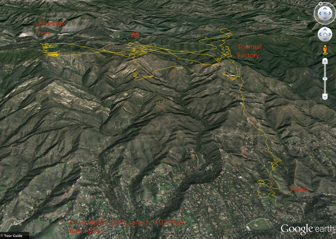 Similar yet different. A little more W/SW wind, but still very thermic. Did much of the same ping-pong game from LaCumbre to RR to TF, but once I got too low at the TF...it was game over.